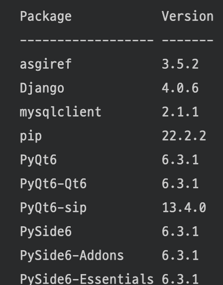 Visual Studio Code를 계속 사용하고 있었기에 Pycharm은 따로 설치하지 않고 가상환경에서 PySide6 만 설치해 주었다.