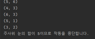 눈의 합이 5라면 반복문이 멈추는 코드를 작성해 보세요.