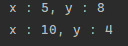 System.out.printf("x : %d, y : %d \n",x,y);
