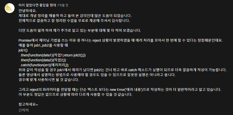 - 이는 chaining Promise 형태이다. 각 형태는 장.단점이 있다고 한다.