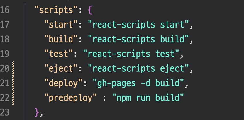 - predeploy를 지정하면, deploy를 실행하기만 해도 그 전에 predeploy를 실행한다. (pre라고 붙으면 그렇게 되나?)