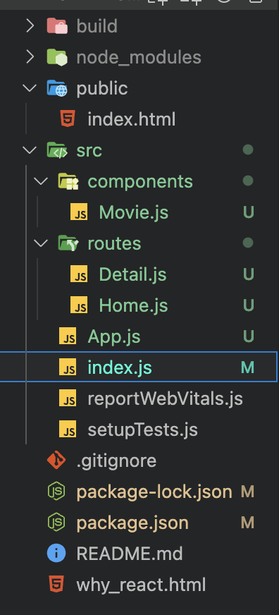 - 현재 리액트 프로젝트를 진행한 폴더의 구성이다.